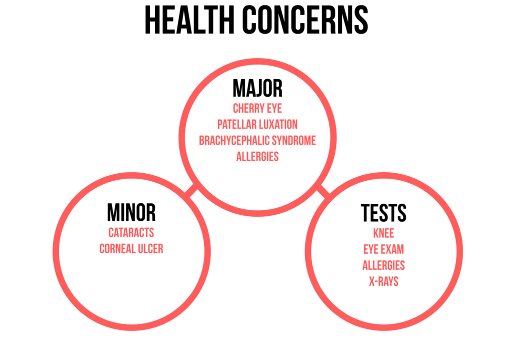 There’s no guarantee that your dog will get any or all of these conditions listed below, but it’s important to be aware of them if you’re considering this breed.