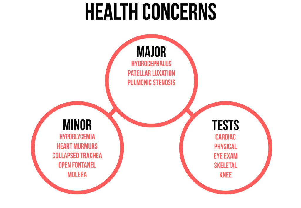 Chihuahuas are generally a fairly healthy breed but as with all breeds, there are some health conditions they are more prone to. They do not have any major health problems but can be born with medical conditions or acquire conditions as they age. It is important to note that not all Chihuahuas will have any or all of these conditions but it is good to be aware of possible health conditions they may have. If you have access to your dog’s parental health records that would be a great place to do some research and see what he may be prone to having. You can obtain health clearances for both of the parents of your dog to make sure they’ve been tested and cleared from the following conditions. Health clearances can be confirmed by checking the Orthopedic Foundation for Animals (OFA) website. Be sure to purchase from a responsible breeder that tests for health conditions in all the dogs they breed and provide vaccines and deworming prior to taking him home.