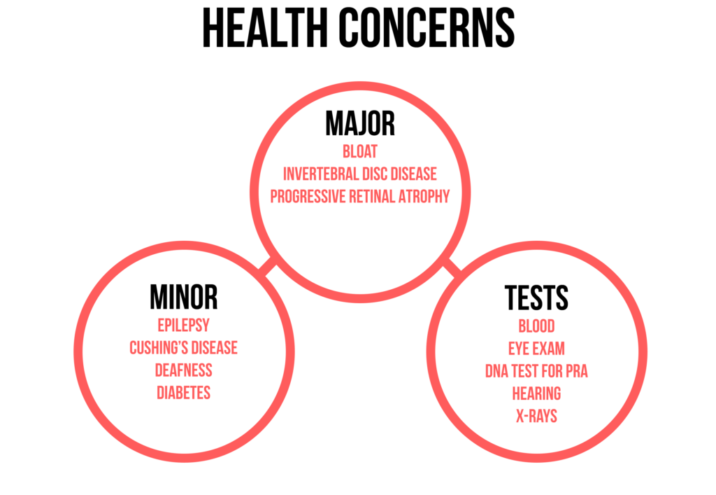 Dachshunds are generally a fairly healthy breed but as with all breeds, there are some health conditions they are more prone to. They do not have any major health problems but can be born with medical conditions or acquire conditions as they age. It is important to note that not all Dachshunds will have any or all of these conditions but it is good to be aware of possible health conditions they may have. If you have access to your dog’s parental health records that would be a great place to do some research and see what he may be prone to having. You can obtain health clearances for both of the parents of your dog to make sure they’ve been tested and cleared from the following conditions. Health clearances can be confirmed by checking the Orthopedic Foundation for Animals (OFA) website. Be sure to purchase from a responsible breeder that tests for health conditions in all the dogs they breed and provide vaccines and deworming prior to taking him home.