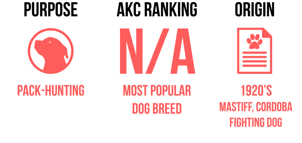 This breed is banned in Israel, Australia, Denmark, Iceland, Fiji, Ukraine, Singapore, and the United Kingdom. Since he was bred from the Cordoba fighting dog, many still have concerns about him being an aggressive dog and, therefore, ban his breed. He does have a strong prey drive and if not properly socialized he will see small dogs and cats as prey.