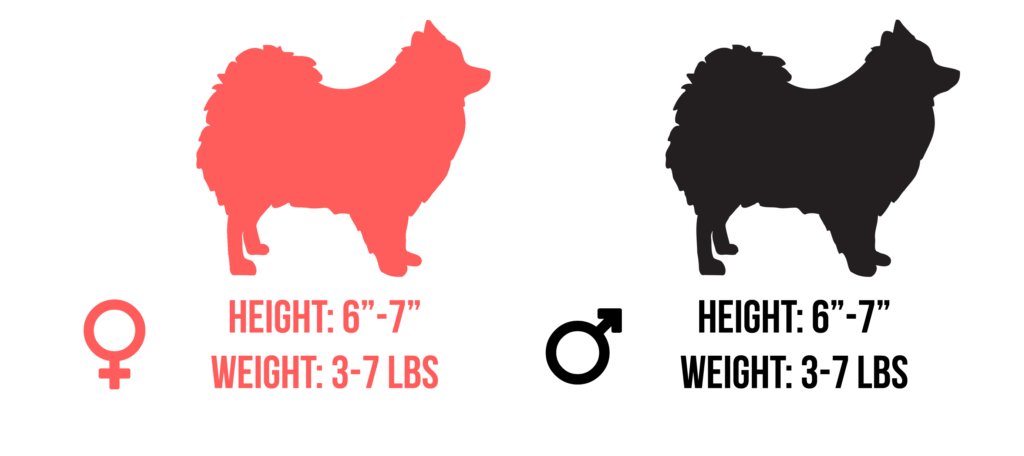 The Pomeranians of today are tiny, small dogs. Accordingly, they should weigh no more than 7 lbs. and no less than 4 lbs.